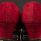 Raspberry suede pumps w/ Cuban heel, label "Ferragamo", (some slight wear to suede, spot on vamp of right shoe) very good.