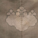1 plum colored shot silk Kimono export robe w/silk embroidered chrysamthemum motif, panel inserted at CB for pleat, mauve silk braid to cuffs, padded hem, matching sash, B 50", L 58.5" (lining partially removed, torn at SHs, neck & hem, tide marks to CB hem & sleeves) fair-poor; 1 grey silk lined in black cotton, B 52", L 63" (spot stains to back L sleeve, discoloration/fade throughout) good ; t/w 1 multi-colored orange, blue & green in geometric motif w/ white & red lining, B 49", L 63.5".