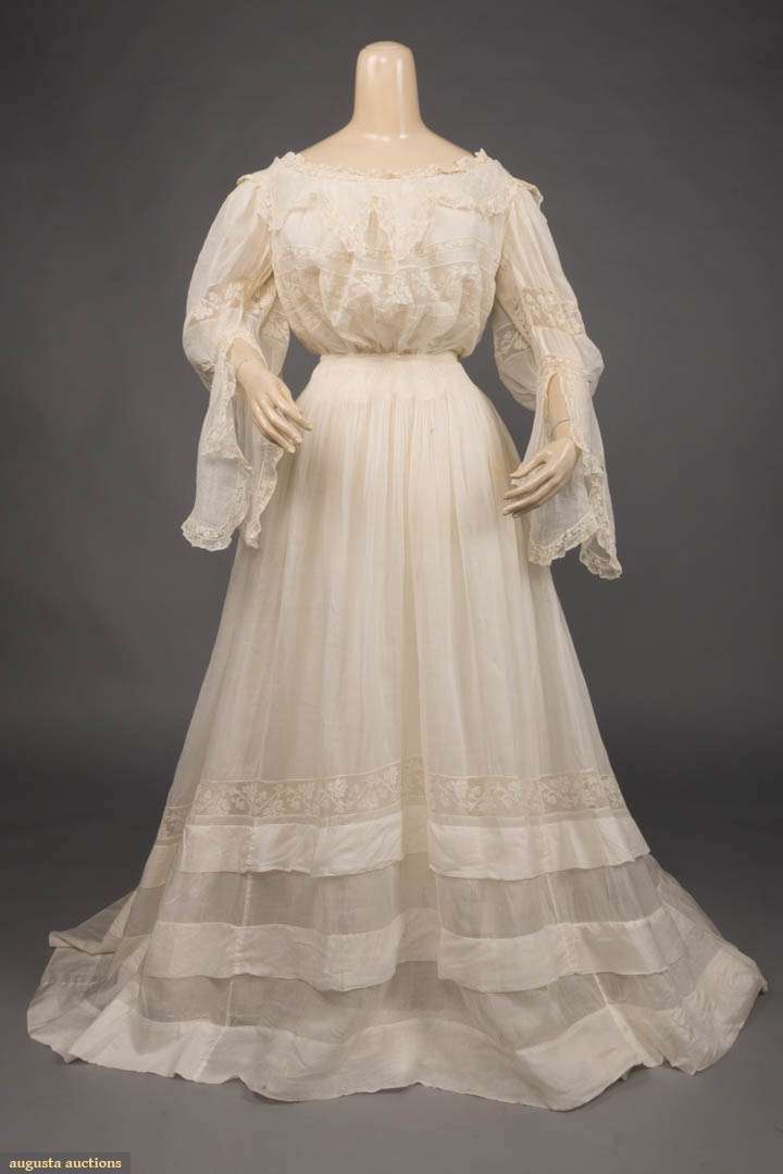 FIVE PIECE TRAINED LINGERIE GOWN, 1900-1910s
