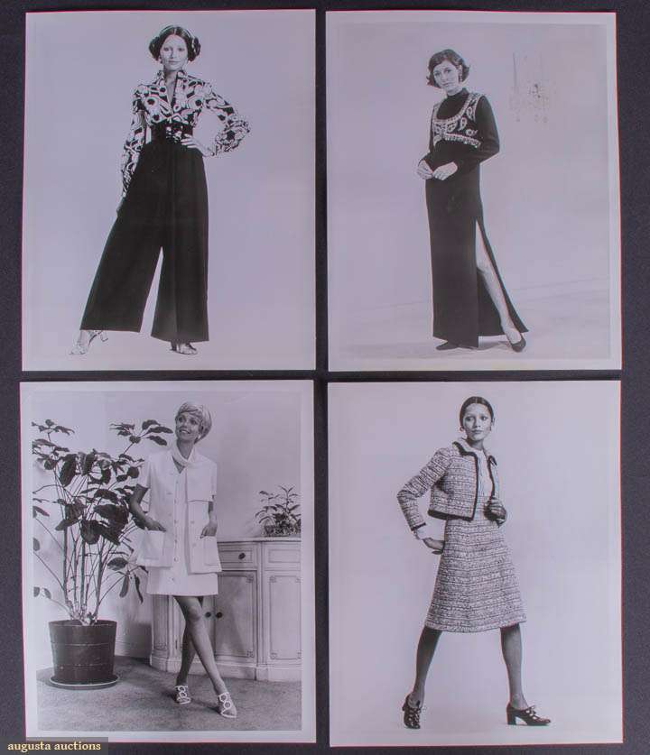 Twenty press release fashion prints from New York Couture Business Council, all 8.5" x 10": 11 'Carlyle' Spring 1970 & 1971, (1 damaged); 5 'Tom Nasarre for Junior Sophisticates', three Spring 1969, two Fall 1969, 8" x 10"; 1 'Davidow', Fall 1966, 8" x 10", (all w/ light yellowing at edges, some w/ light scuffing) all good. From the Eleanor Lambert Archive, FIT Special Collections.