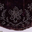1 purple w/ silver frame rosebud motif, lilac silk interior, cosmetic mirror w/ matching pouch, Wd 6.5", Ht 8.5", (tarnish to frame, bead loss at trim) good; 1 green w/ drawstring & steel cut beads, lined in bone silk, Wd 5.25", Ht 6.25", (missing 1 tassel, velvet worn, small tears & stains to lining) good; 1 purple w/ drawstring, steel cut beads & bone silk interior, Wd 5.5", Ht 6", (wear to velvet around opening, 1" light stain, rusted beads) fair; t/w 1 black w/ jet, steel & crystal beads, Wd 8.5", Ht 13".