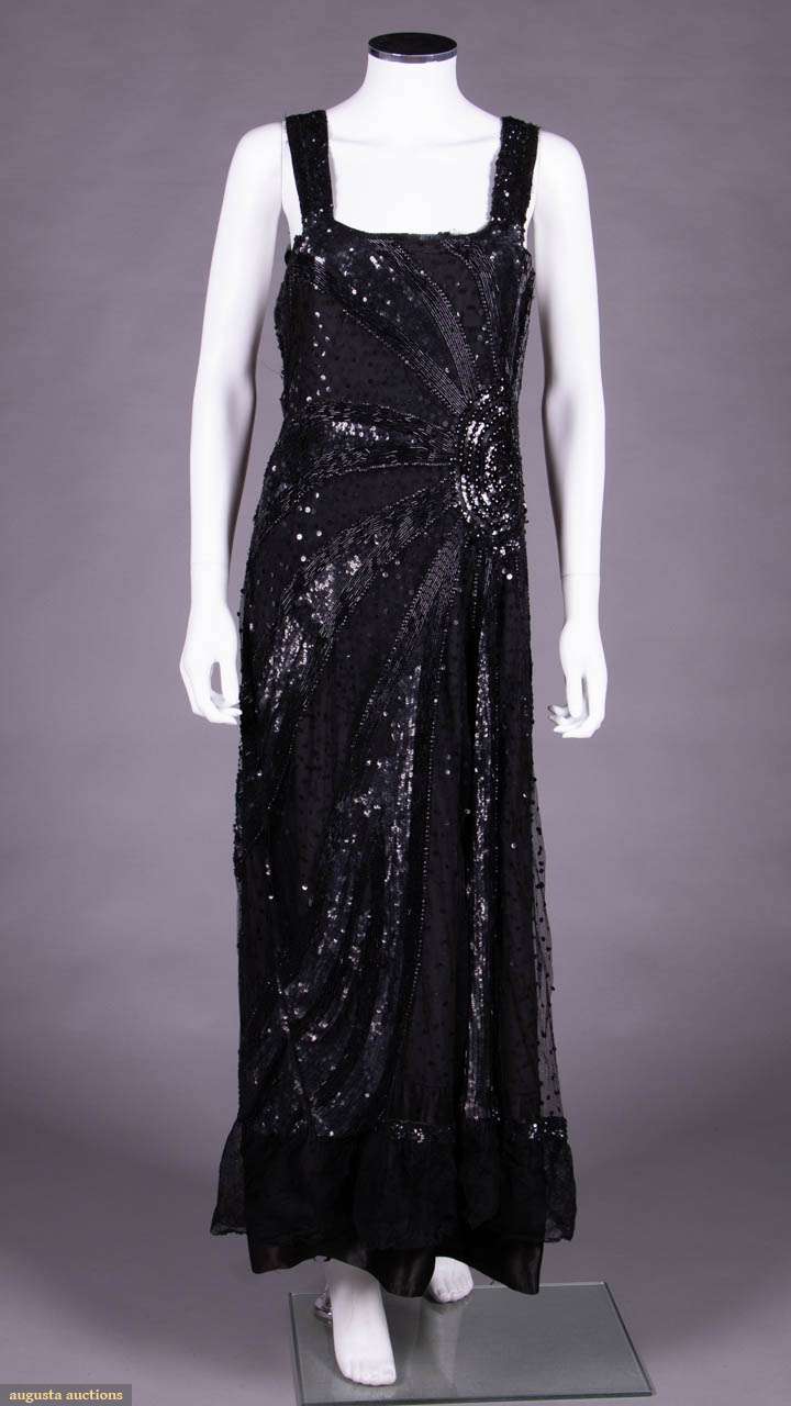 HEAVILY BEADED & SEQUINED EVENING GOWN, c. 1930