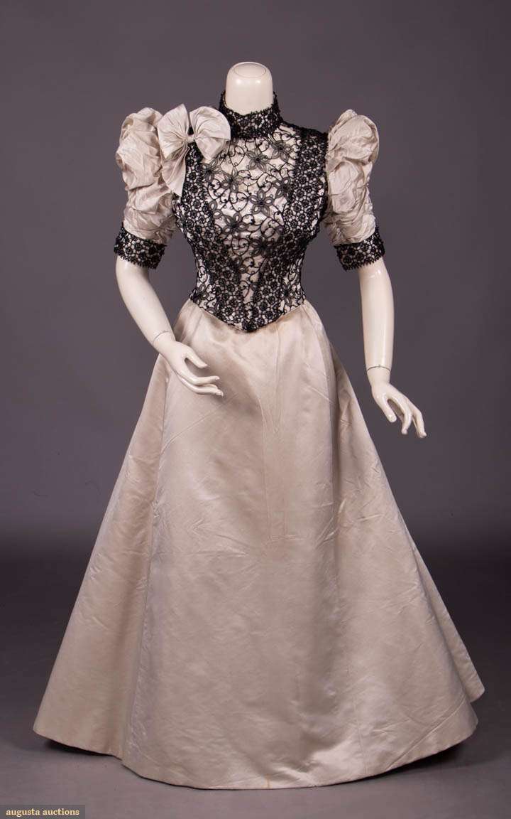 BONE SILK SATIN EVENING GOWN, c. 1893