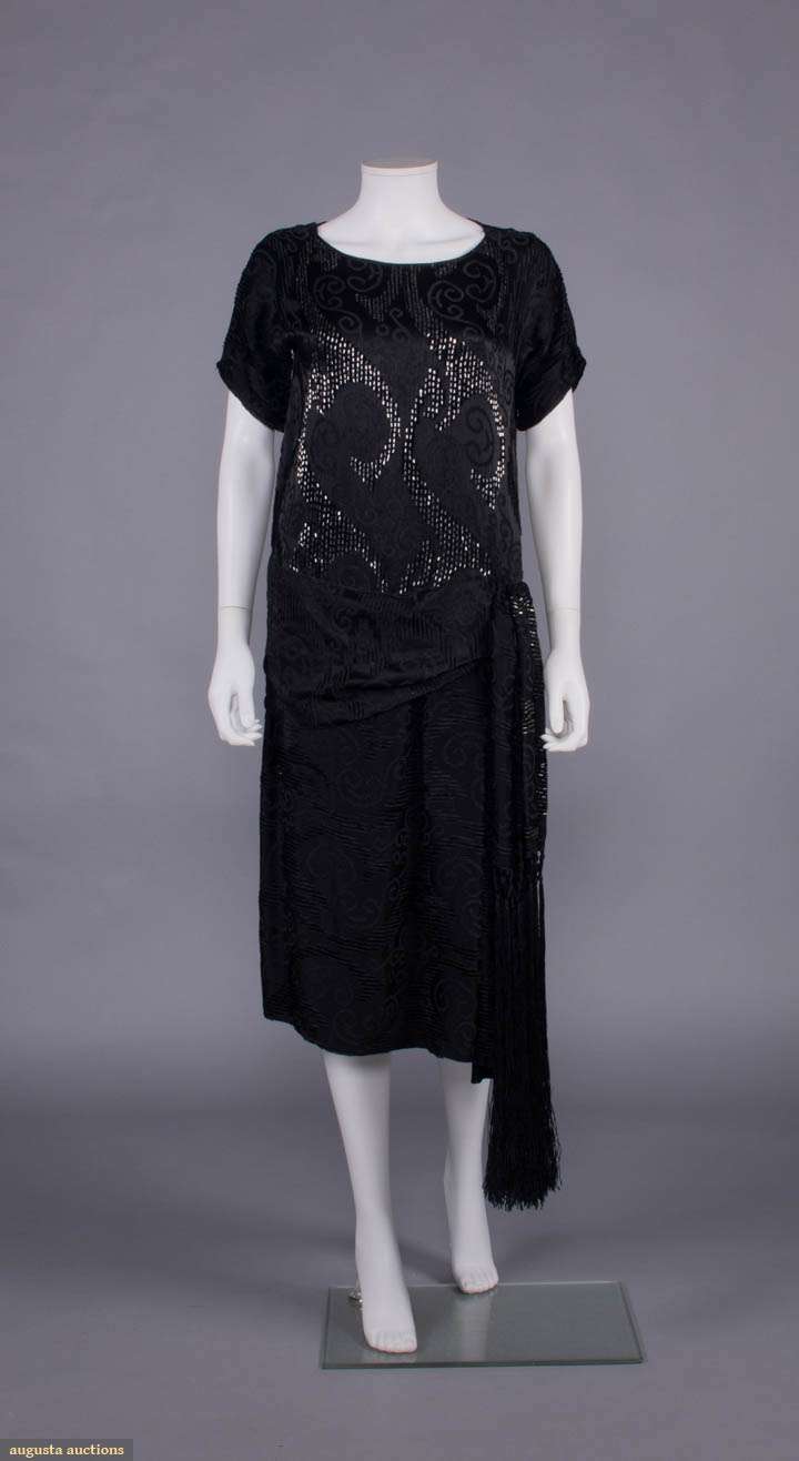 BEADED VELVET & SILK BROCADE EVENING DRESS, LATE 1920s