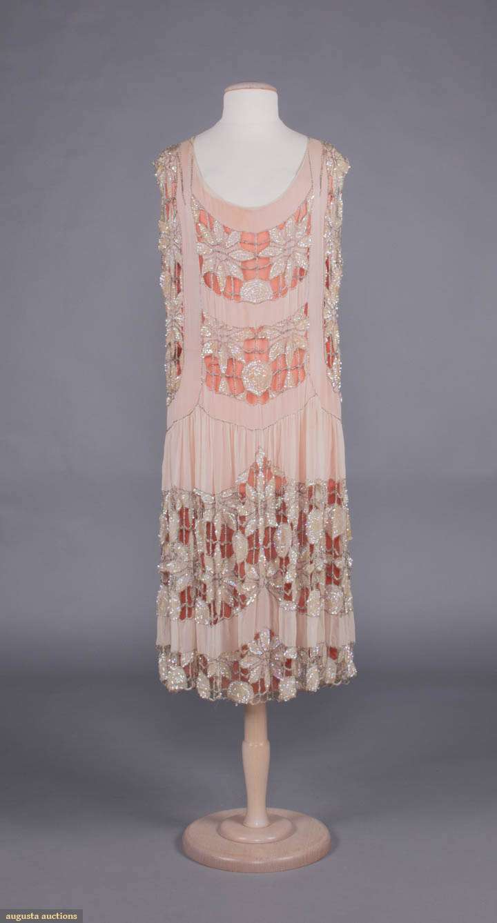 ELABORATELY BEADED & CUTAWAY PARTY DRESS, MID 1920s