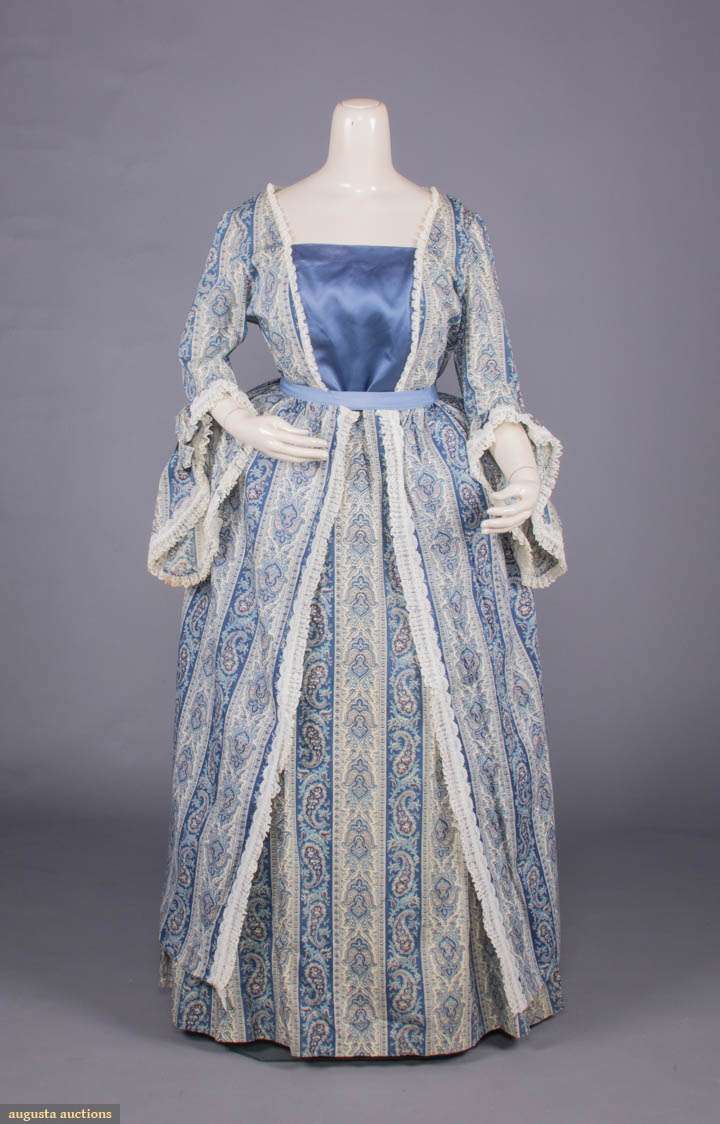 Printed cotton 2-pc fancy dress costume in Colonial style. This item came from a random box in the warehouse. It was photographed to illustrate the types of items to be found in the DISCOVERY boxes.