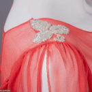 1 black crepe, embroidered w/ crystal seed beads in bow at front SHs, deep V-neckline, ray pleated to CF W, B 38", W 26", L 45", (belt missing, two 0.5" seam openings front W, minor bead & significant rhinestone loss, few pulls & spot stains) very good; 1 crimson silk crepe w/ chatoyant short bugle beading at SHs, short puff sleeves & open ladder back, B 33", W 24", L 52", (slip N/I, elastic at cuffs shot, 0.5" seam opening left front W, few light spot stains, light 4.5" stain seat, cluster sm holes right slv) good; 1 black rayon w/ gathers into SS & CF zip closure, faux peplum w/ CB bow, B 34", W 28", L 49", (hem falling/seam tape shattered, 0.75" repair top SS zip, 2.75" seam opening & 0.75" tear right underarm SS, seam loss CB) good.