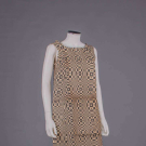 Scott Paper Company shift was an advertising gimmick used to promote the company’s disposable tableware collection in 1966, label "Paper Caper by Scott", B 38", L 37.5" size S, box 13.75" x 11.75" x 1.375", (box discolored, creased & opened), Identical dress held in MET collection accession #1995.444.2. Mannequin photos taken of same dress sold in previous auction, condition may vary as dress is unopened & unworn.