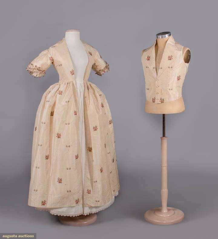 SILK OPEN ROBE & WAISTCOAT, 1770s & 1840s