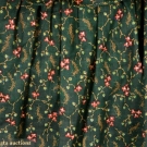 Hunter green cotton with red flower, orange branch, green leaf and orange dot print, 3" self fabric ruffle at neck, deep collar with 5" deep ruffle around edge and around mantle's shaped perimeter, front hangs longer than back, printed blue and tan check cotton lining, single hook and eye fastening, pristine.