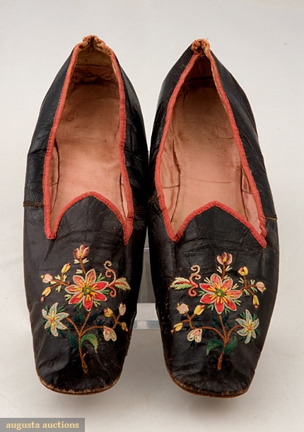 LADY'S COLORFULLY EMBROIDERED SHOES, MID 19th C