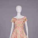 CEIL CHAPMAN PRINTED SILK PARTY DRESS, USA, MID 1950s