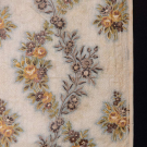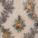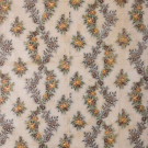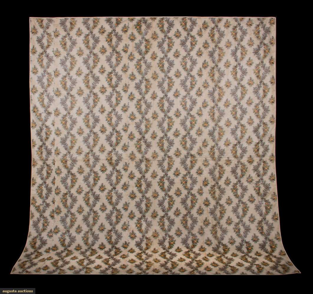 Block printed cotton in floral garlands w/ roses & wallflowers, unbacked, finished w/ cotton tape, 84.75” x 98", (broad light discoloration & spot staining, scattered small-4.5" darker stains) very good. Ohio State Historic Costumes & Textiles Collectio