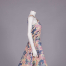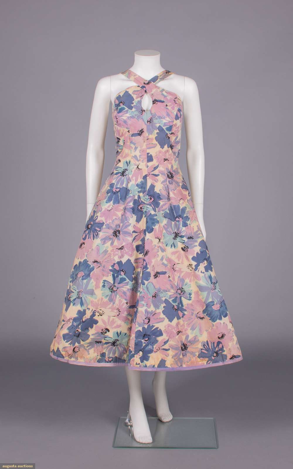 Floral print silk party dress, label "Estevez", 1950s. This items came from a random box in the warehouse. It was photographed to illustrate the types of items to be found in the DISCOVERY boxes. Live bidding only.