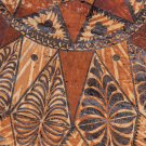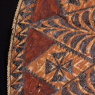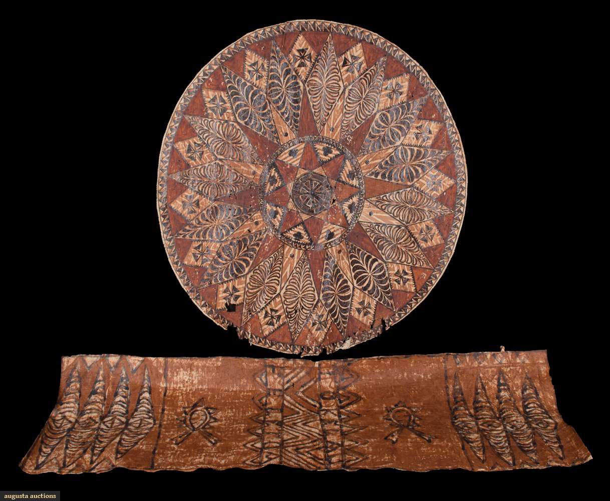 Metallic & black decorated bark tapa cloth. This item came from a random box in the warehouse. It was photographed to illustrate the types of items to be found in the DISCOVERY boxes. Live bidding only.