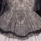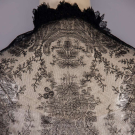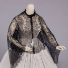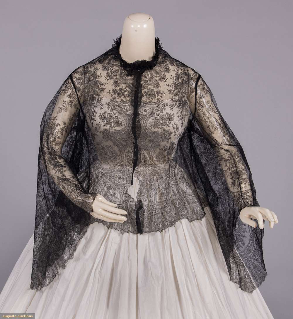 Black chantilly lace paletot w/ shaped bodice & bell sleeves. This item came from a random box in the warehouse. It was photographed to illustrate the types of items to be found in the DISCOVERY boxes. Live bidding only.