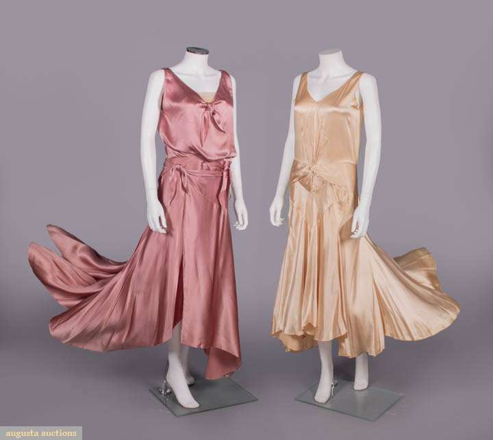 TWO SILK SATIN EVENING DRESSES, PHILADELPHIA, EARLY 1930s