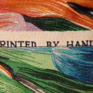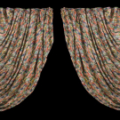 2 matching hand printed cotton twill Missoni valances, late 1960s, selvage stamped "Printed by Hand", Removed from Concord Resort Hotel (NY) Ballroom, 180” x 125" ungathered, (light stains/discoloration, pulls to stitching, needs to be laundered) good.