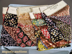 12 PRINTED SILK MFGR. SWATCH CARDS, c. 1930