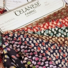 Voiles or satins, most small scale novelty or floral prints, w/ multiple colorways on "Celanese Brand Fabrics" cards, some samples w/ multiple colorways, C. E. Mullin Colllection, excellent.