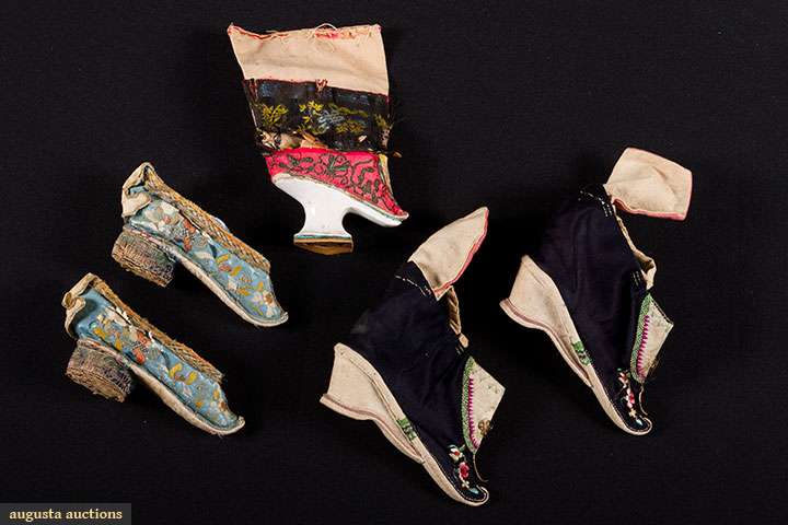 2 PAIR SHOES FOR BOUND FEET, CHINA, 19TH C