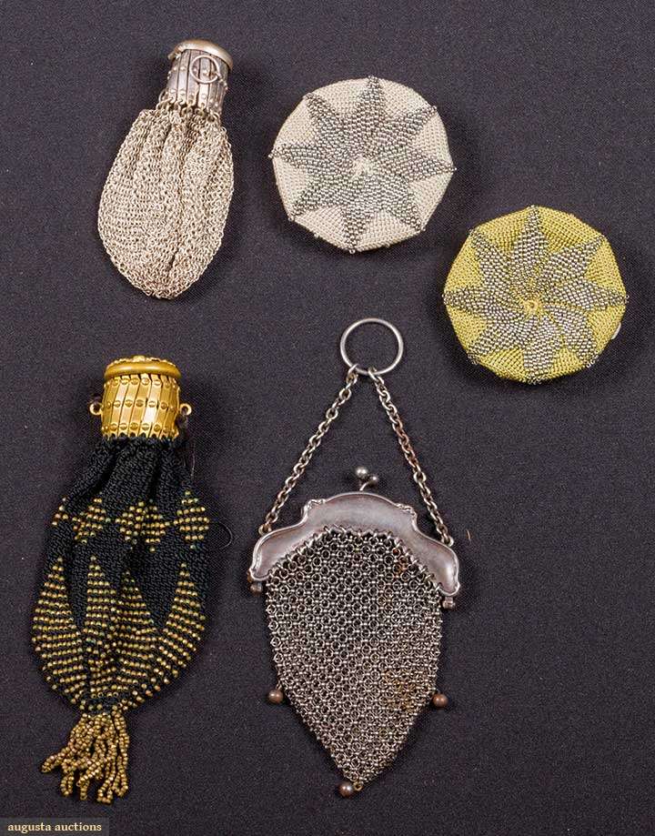 5 METAL COIN PURSES, 1890-1910