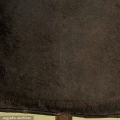 Black wool shag material, cotton lining, leather sweat band, tall cylindrical crown, 2.875" wide brim slightly upturned on sides, cotton crown lining printed with woman in classical dress and the word "WATERPROOF", also written twice in pencil in lining,"A. E. WARE", (edges and brim worn, spots on brim) good.