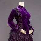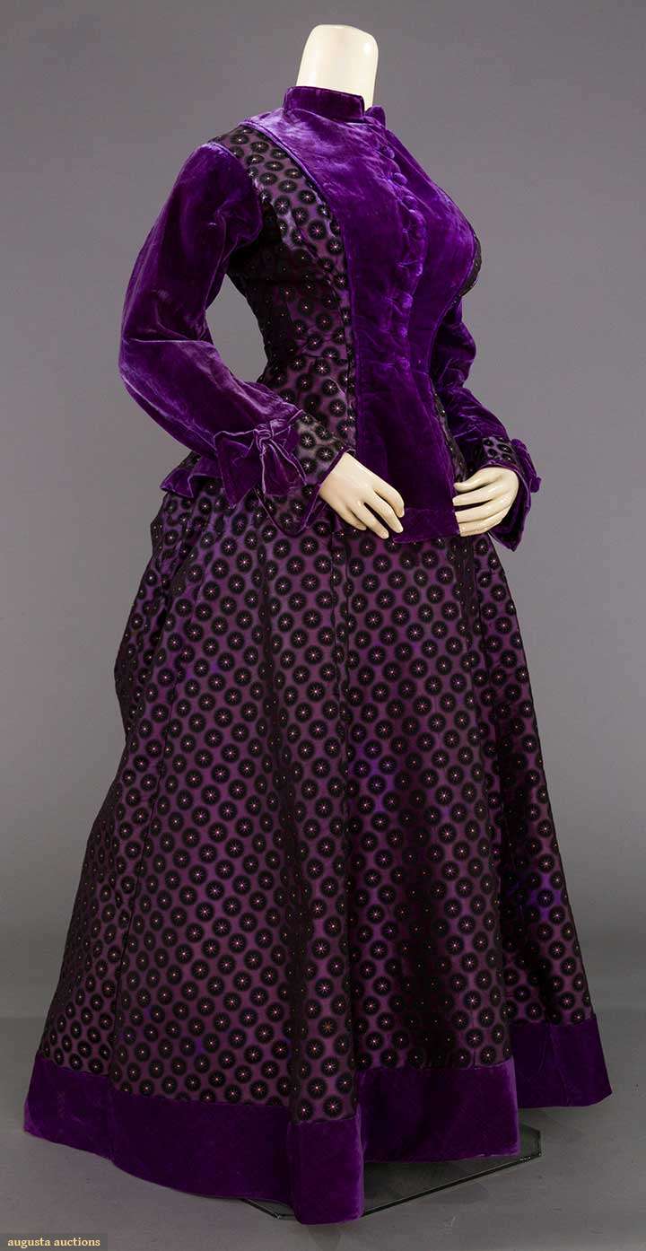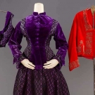 PURPLE SILK BROCADE VICTORIAN DRESS